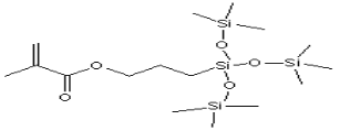 3-Methacryloyloxypropyltris(trimethylsilyloxy) silane CAS # : 17096-07-0 Synonyms: TRIS, TRISS 3-[Tris(trimethylsiloxy)silyl]propyl methacrylate Production Capacity 3,000kg/month Purity min 99.0% Inhibitor optional Formula C16H38O5Si4 Molecular Weight 422.81 Melting point <0°C °C Boiling point 112-115 ºC (0.2 MMHG) Density 0.918 Flash point >230 °F |