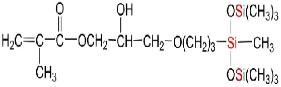 Methyl-di(trimethylsiloxy)-silyl propyl glycerol methacrylate CAS # : 69861-02-5 Synonyms: SiGMA, Methyl-di(trimethylsiloxy)-sylyl propyl glycerol methacrylate [methyl bis(trimethylsiloxy)silyl] propyl glycerol methacrylate Production Capacity 300kg/month Purity 96.0% min Inhibitor optional Formula C17H38O6Si3 Molecular weight 422.7 Boiling point 〉205 °C Density Vapor pressure Flash point 180°C (356°F) Solubility in water insoluble |